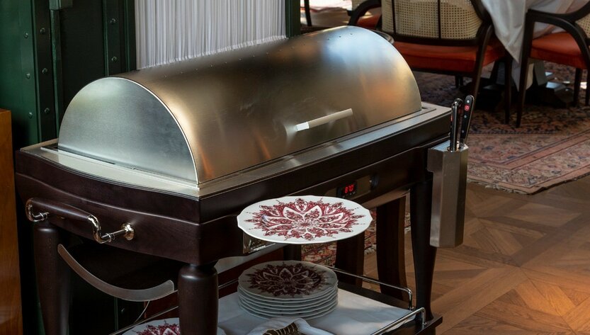 The very special and well known JNcQUOI restaurant in Lisbon, run by the celebrated chef António Bóia, uses one of our PARIS roast trolleys for their daily lunch service.