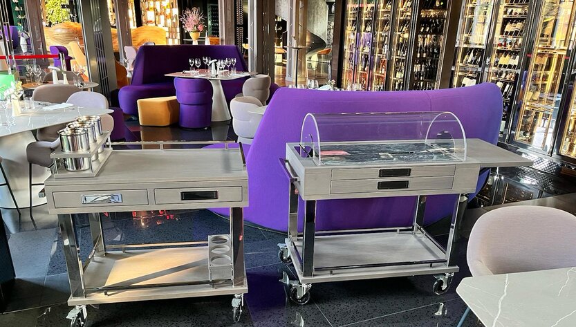 Our Trolleys Now at Porto Palace Hotel in Montenegro. We are excited to announce that our trolleys have arrived at the Porto Palace Hotel in Montenegro, where they are used at the Napa Restaurant & Wine Bar. With their handcrafted quality and elegant design, our trolleys enhance the dining experience at the restaurant.