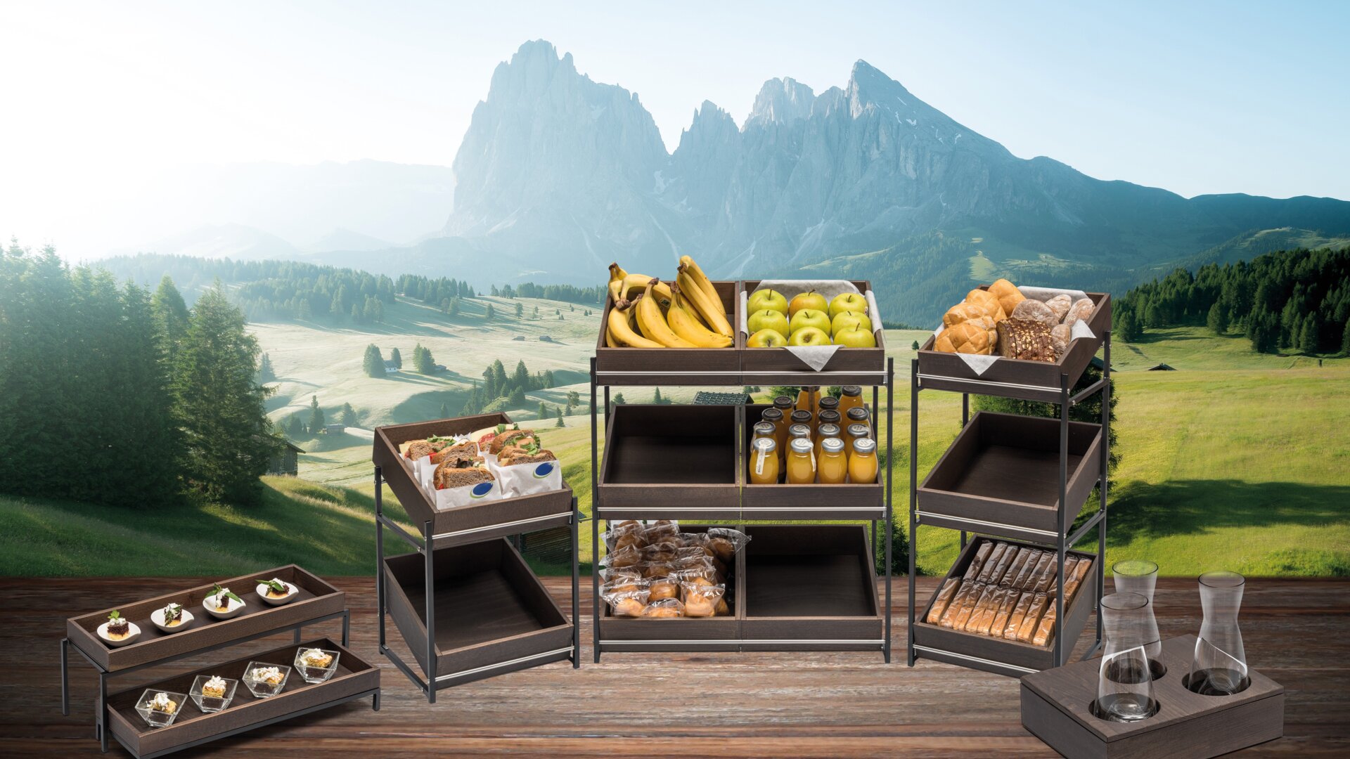 Line Dolomiti – Natural Elegance & Smart Functionality Made from solid wood and food safety certified, Linea Dolomiti combines durability, style, and practicality for a flawless buffet setup. Plus, its space-saving design allows elements to be stacked, optimizing organization.