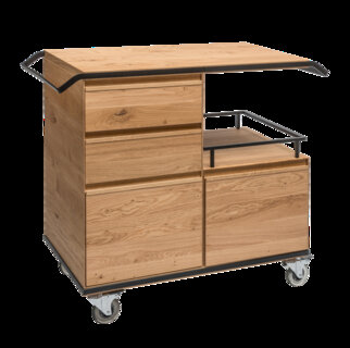 Service oak trolley with 2 cupboards