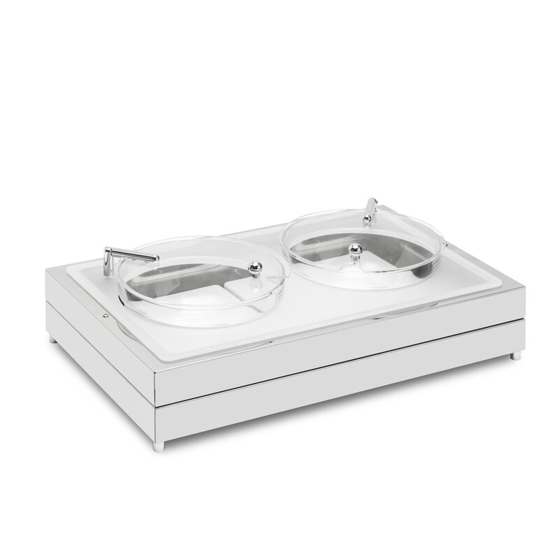 FANTASY INOX Plateau de service | 2 bols en verre | 2 couvercles | réfrigéré