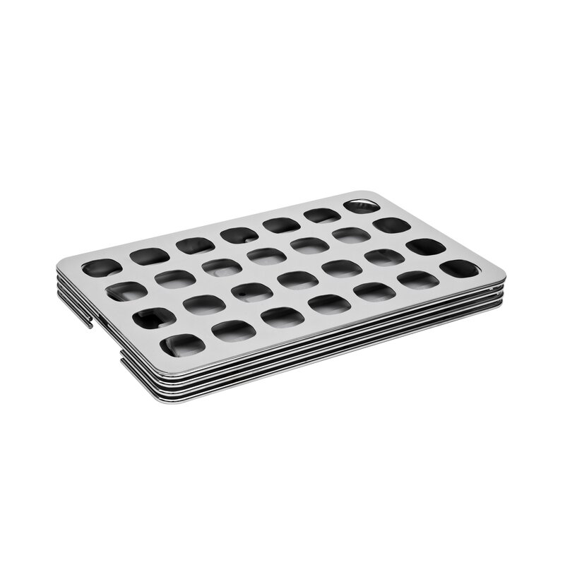 Plateau en PMMA avec 28 trous pour pots de yaourt ronds et rectangulaires Ø 5,5 cm