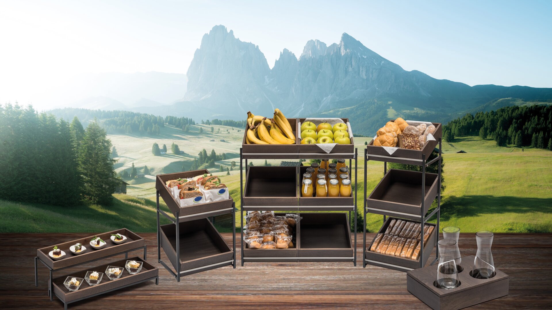 Realizzata in legno massiccio e certificata per la sicurezza alimentare, Linea Dolomiti combina resistenza, stile e praticità per un allestimento buffet impeccabile. Inoltre, il design salvaspazio permette di impilare gli elementi, ottimizzando l'organizzazione.