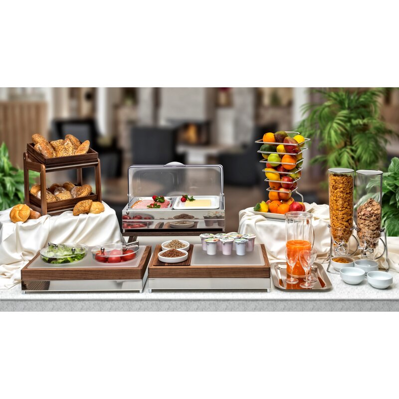 FANTASY INOX-LEGNO espositore | PMMA con fori | 2 caraffe | 4 ciotole | cool