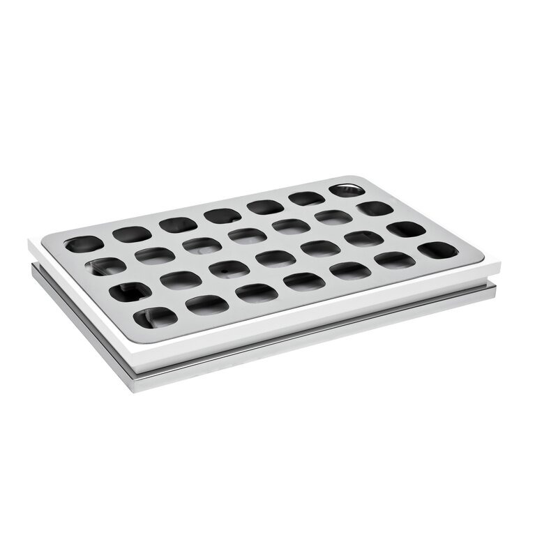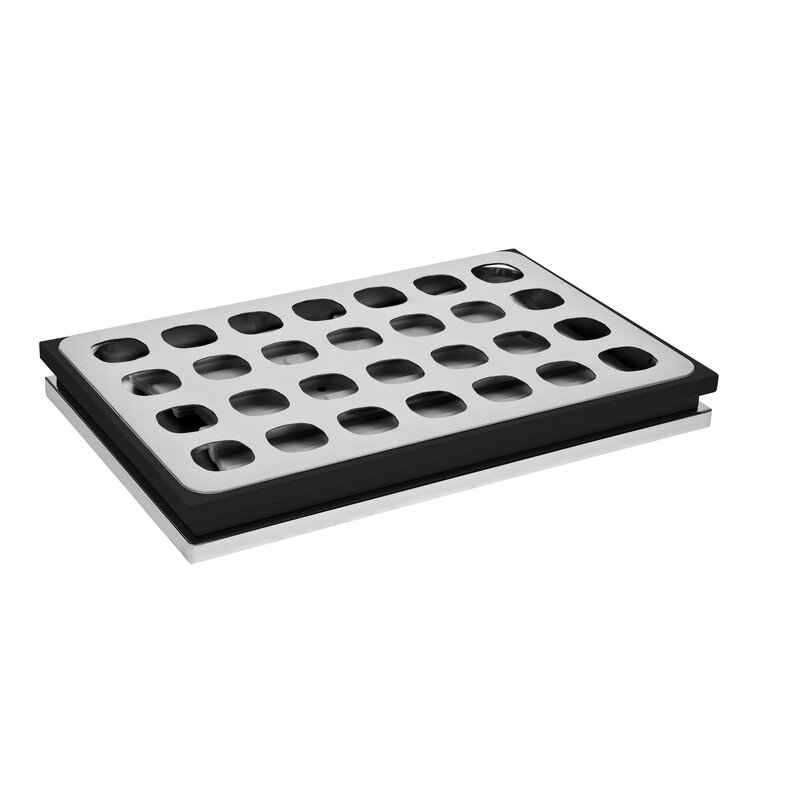 Piastra in PMMA con 28 fori, accoglie vasetti rotondi e quadrati Ø 5,5 cm
