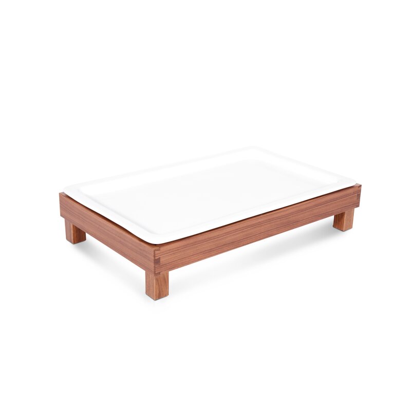 Rahmen und Füße aus massivem Walnussholz - Füße abnehmbar und stapelbar um die Höhe individuell zu bestimmen