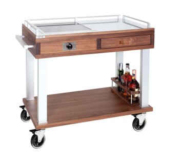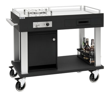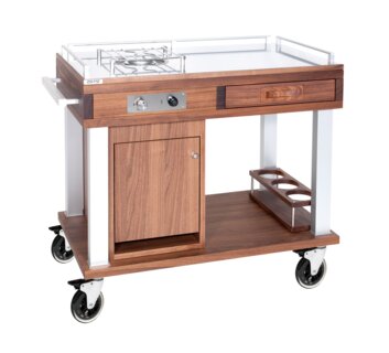 Unsere Flambierwagen können entweder mit Gas als auch elektrisch bestellt werden. Die Stärke unserer Heizelemente liegt in der maximalen Sicherheit, unterstützt durch die CE-Zertifizierung. Auf allen unseren Flambierwagen sind die gleichen Gas- oder Induktionsherde verbaut.