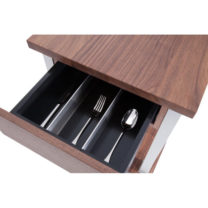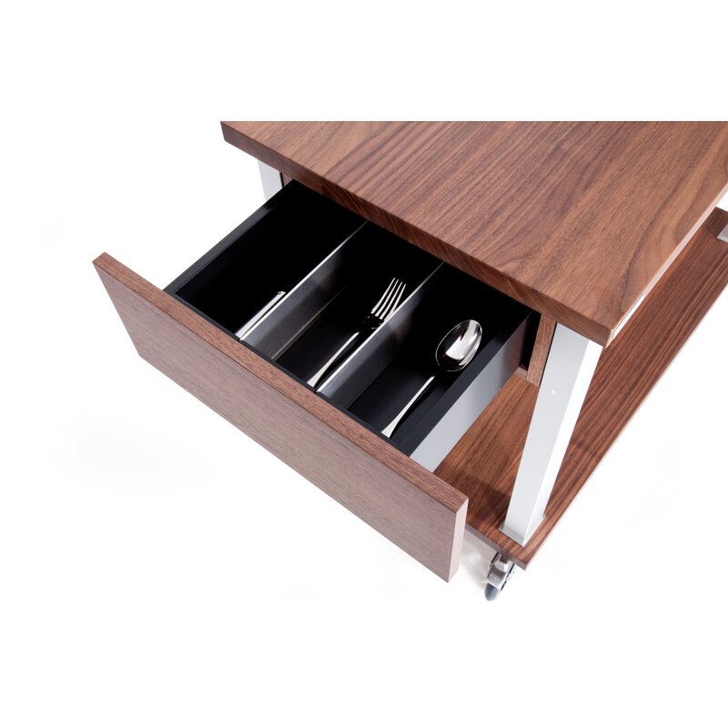 Two big drawers on the short side of the trolley with 3 separations for cutlery