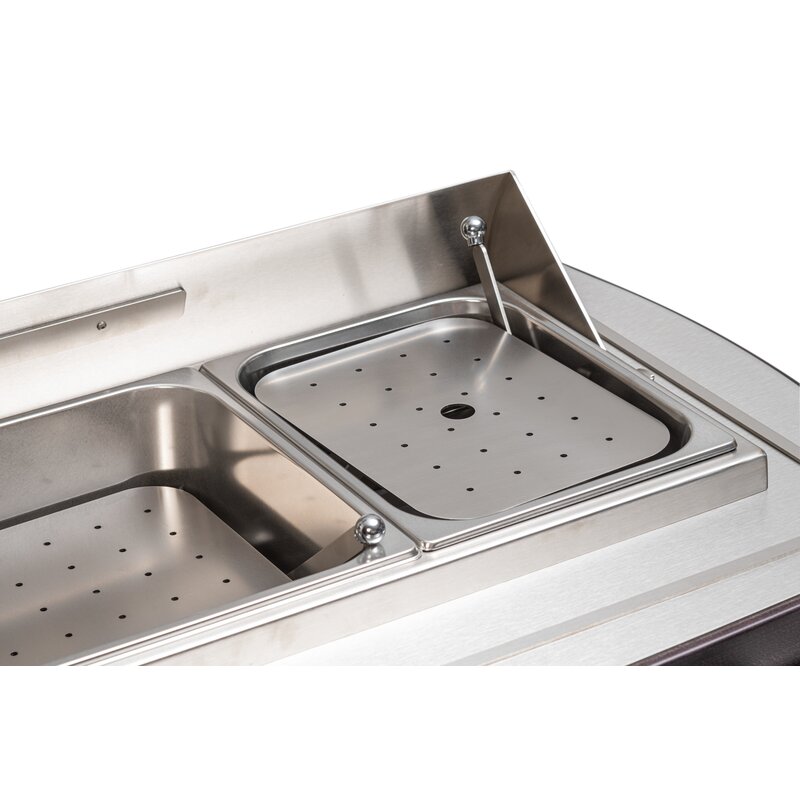 Roll top cover, bain-marie and other elements listed in 18/10 stainless steel