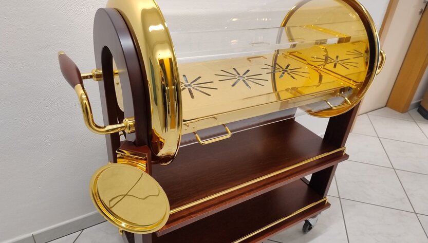 La longue tradition dans la création et la réalisation d'articles de buffet, tels que les distributeurs de jus et de céréales, les présentoirs et les élévateurs, ainsi que les chariots de salle tels que les flambés, les chariots à dessert réfrigérés également avec moteur, le guéridon et bien d'autres articles, nous permet d'avoir une grande expérience dans la réalisation de projets spéciaux.