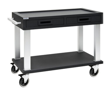 La structure de support est stable et les roues sont antistatiques, antibactériennes, non marquantes et très silencieuses. Les différentes lignes, comme indiqué ci-dessous, peuvent avoir deux ou trois niveaux, deux roulettes ou quatre avec freins, deux tiroirs ou une table à plateau.