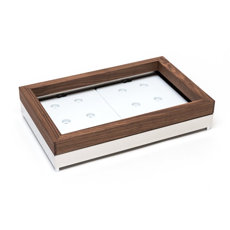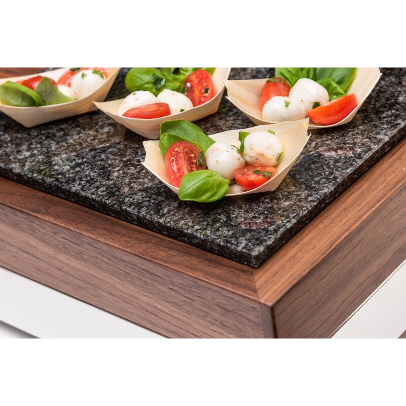 Corona superiore in legno noce massiccio con possibilità di montaggio cloche GN